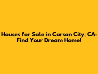 Houses For Sale In Carson City, CA: Find Your Dream Home!
