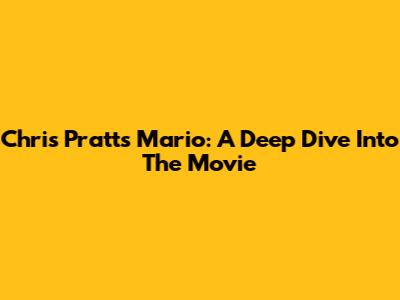 Chris Pratt's Mario: A Deep Dive Into The Movie