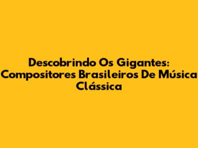 Descobrindo Os Gigantes: Compositores Brasileiros De Música Clássica