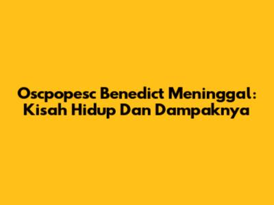 Oscpopesc Benedict Meninggal: Kisah Hidup Dan Dampaknya