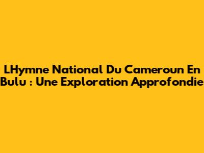 L'Hymne National Du Cameroun En Bulu : Une Exploration Approfondie