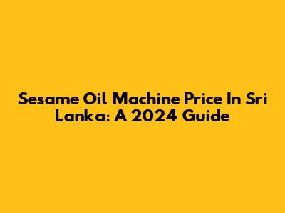 Sesame Oil Machine Price In Sri Lanka: A 2024 Guide
