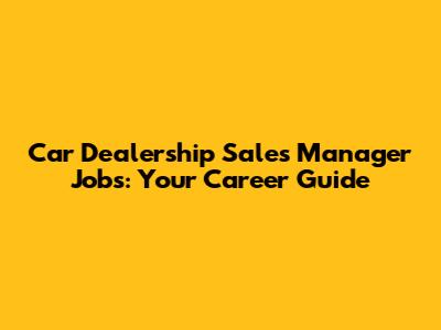 Car Dealership Sales Manager Jobs: Your Career Guide