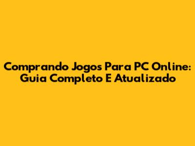 Comprando Jogos Para PC Online: Guia Completo E Atualizado