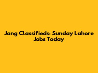 Jang Classifieds: Sunday Lahore Jobs Today