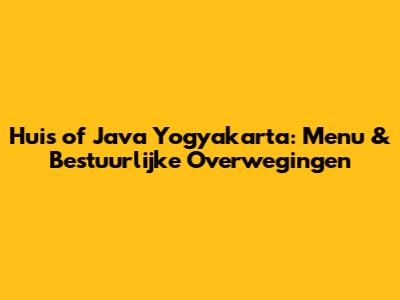 Hey guys, so you're planning a trip to Yogyakarta and heard about this cool place called Huis of Java? Awesome choice! This spot is a real gem, blending historical vibes with delicious Indonesian flavors. Today, we're diving deep into what makes Huis of Java a must-visit, focusing on its amazing menu and some interesting administrative aspects you might want to know about before you go. Whether you're a foodie, a history buff, or just looking for a unique experience, stick around – we've got you covered!