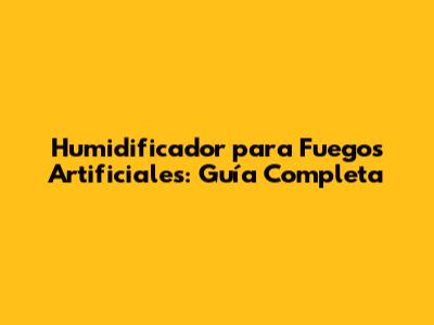 Humidificador Para Fuegos Artificiales: Guía Completa