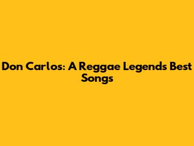 Don Carlos: A Reggae Legend's Best Songs
