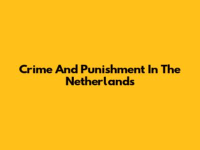 Crime And Punishment In The Netherlands
