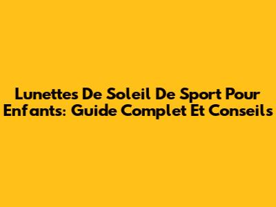 Lunettes De Soleil De Sport Pour Enfants: Guide Complet Et Conseils