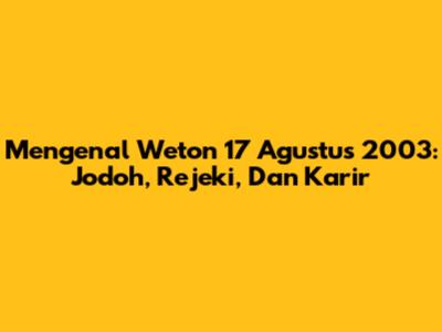 Mengenal Weton 17 Agustus 2003: Jodoh, Rejeki, Dan Karir