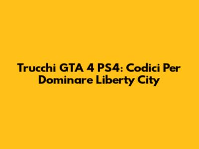 Trucchi GTA 4 PS4: Codici Per Dominare Liberty City