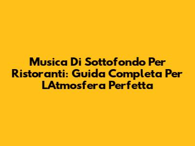 Musica Di Sottofondo Per Ristoranti: Guida Completa Per L'Atmosfera Perfetta