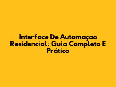 Interface De Automação Residencial: Guia Completo E Prático