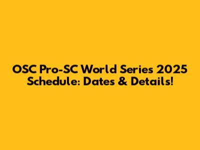 OSC Pro-SC World Series 2025 Schedule: Dates & Details!