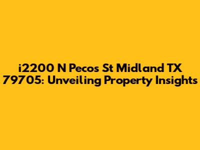 Hey there, property enthusiasts! Ever found yourself curious about a specific address and wanting to dig into the details? Well, you're in the right place! We're diving deep into i2200 N Pecos St Midland TX 79705, a property that's got some interesting stories to tell. This isn't just about listing an address; it's about uncovering the layers of information that make up a property, from its physical attributes to its potential value. So, buckle up, because we're about to embark on a journey through property details, property information, and property assessments! I will explore various aspects to help you understand the property's significance. Let's get started, shall we?