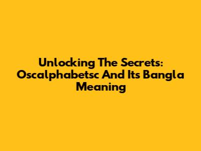 Unlocking The Secrets: Oscalphabetsc And Its Bangla Meaning