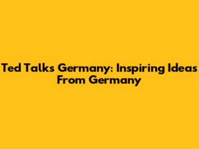 Ted Talks Germany: Inspiring Ideas From Germany