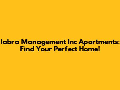 Hey guys! Looking for a new place to call home? Let's dive into what Iabra Management Inc. has to offer in the apartment scene. Finding the right apartment can be super stressful, but with the right info, you can nail it. So, let’s break down everything you need to know about Iabra Management Inc apartments to help you find your dream spot.