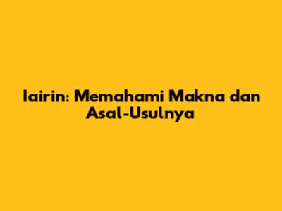 Iairin: Makna, Asal-Usul, Dan Relevansinya