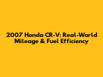 2007 Honda CR-V: Real-World Mileage & Fuel Efficiency