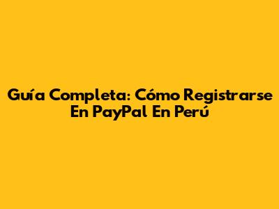 Guía Completa: Cómo Registrarse En PayPal En Perú