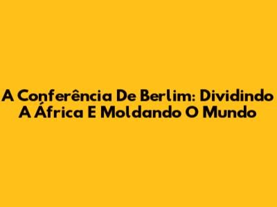 A Conferência De Berlim: Dividindo A África E Moldando O Mundo