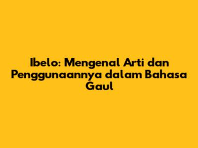 Disclaimer: Penggunaan bahasa gaul sangat bergantung pada konteks dan situasi. Artikel ini hanya bertujuan untuk memberikan penjelasan dan contoh penggunaan kata ibelo. Penulis tidak bertanggung jawab atas segala dampak negatif yang timbul akibat penggunaan kata ibelo yang tidak tepat.