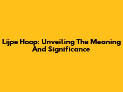 Lijpe Hoop: Unveiling The Meaning And Significance
