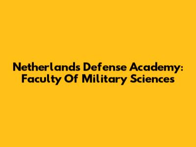 Netherlands Defense Academy: Faculty Of Military Sciences