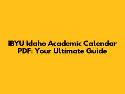 Hey guys, let's dive deep into the IBYU Idaho Academic Calendar PDF for the upcoming academic year. Knowing your academic calendar is super crucial, whether you're a new student trying to get a grip on things or a returning student looking to plan your semesters. This calendar isn't just a list of dates; it's your roadmap to success, helping you navigate through important deadlines, exam periods, holidays, and registration windows. We're talking about crucial dates for course registration, add/drop periods, withdrawal deadlines, final exams, and even commencement ceremonies. Staying organized with this calendar means you can better manage your study schedule, plan for breaks, and ensure you don't miss any significant academic milestones. It's your secret weapon to staying ahead of the game and making the most out of your educational journey at IBYU Idaho. So, let's break down what you need to know about this essential document and how it can benefit you throughout your academic life.