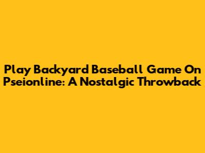 Play Backyard Baseball Game On Pseionline: A Nostalgic Throwback
