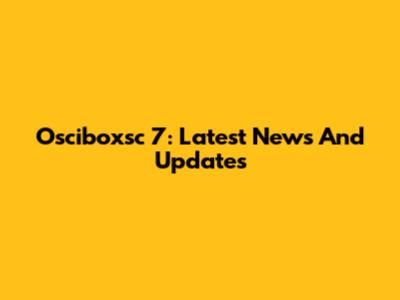 Osciboxsc 7: Latest News And Updates