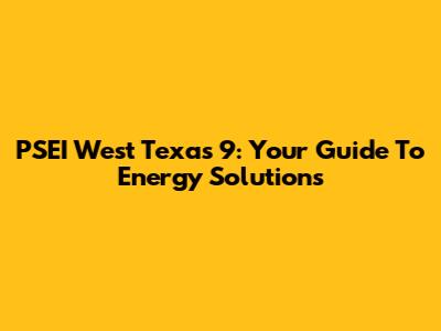 PSEI West Texas 9: Your Guide To Energy Solutions