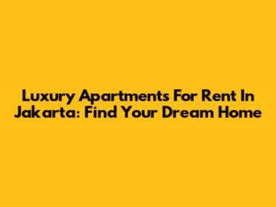 Luxury Apartments For Rent In Jakarta: Find Your Dream Home