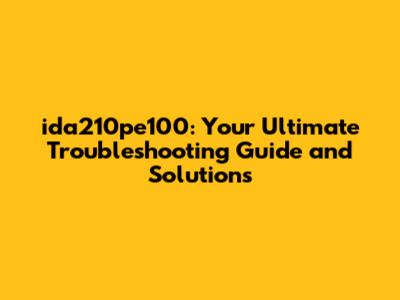 Ida210pe100: Troubleshooting Guide & Solutions