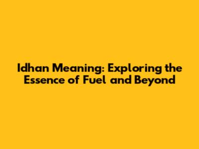 Idhan Meaning: Exploring The Essence Of Fuel And Beyond