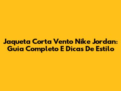 Jaqueta Corta Vento Nike Jordan: Guia Completo E Dicas De Estilo