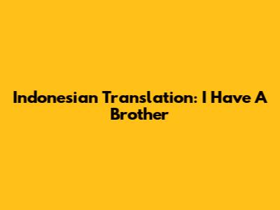 Indonesian Translation: "I Have A Brother"