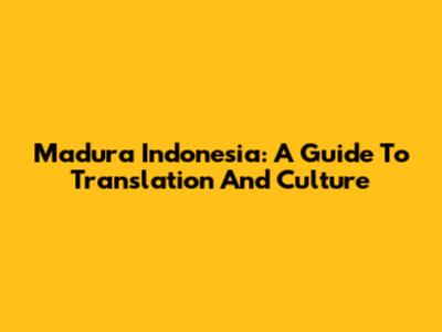Madura Indonesia: A Guide To Translation And Culture