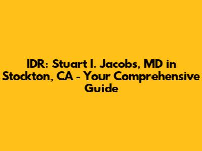 Hey there, folks! Are you on the hunt for top-notch medical care in Stockton, California? If so, chances are you've stumbled upon the name Stuart I. Jacobs, MD, and the practice IDR. Don't worry, we've got you covered! This guide will break down everything you need to know about Dr. Jacobs, the services he offers, and how to get in touch. Get ready to dive in, because we're about to explore the world of medical care in Stockton! We will also mention other related information such as the services offered by the clinic and other similar clinics.