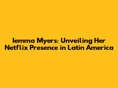 Hey guys! Ever heard the name Iemma Myers? If you're a fan of streaming and, like, anything to do with Netflix in Latin America, then the answer is probably yes! But even if you're new to the name, you're in the right place. Today, we're diving deep into the world of Iemma Myers and her connection with Netflix in Latin America. We'll explore her projects, her impact, and what makes her so fascinating. So, buckle up, grab your popcorn, and let's get started!