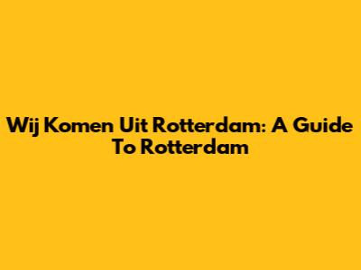 Wij Komen Uit Rotterdam: A Guide To Rotterdam