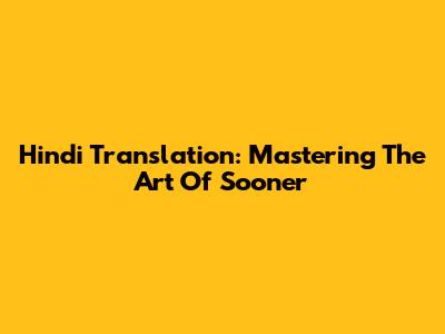 Hindi Translation: Mastering The Art Of Sooner