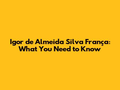 Hey guys, let's dive into the world of Igor de Almeida Silva França. You've probably heard the name, and maybe you're wondering who this person is and why they're making waves. Well, stick around because we're going to break it all down for you. We'll explore his background, his achievements, and what makes him stand out in his field. Whether you're here out of curiosity or because you're already a fan, this article is packed with insights you won't want to miss. We aim to give you a comprehensive overview, so by the end, you'll feel like you're in the know.