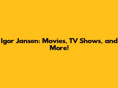 What does the future hold for Igor Jansen? Excitingly, there are several upcoming and future projects that fans can look forward to. Let's explore what's on the horizon for this talented actor.