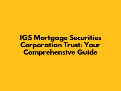 Hey there, finance enthusiasts and curious minds! Ever heard of the IGS Mortgage Securities Corporation Trust? If you're into investments, especially in the realm of mortgage-backed securities, then this is something you'll want to get acquainted with. We're going to dive deep into what this trust is all about, breaking down its structure, exploring its potential benefits, and, of course, taking a peek at the potential risks involved. Think of this as your one-stop guide to understanding the IGS Mortgage Securities Corporation Trust. So, buckle up, grab your favorite beverage, and let's get started!