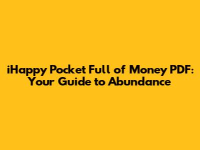 The "iHappy Pocket Full of Money" philosophy offers a powerful framework for cultivating an abundance mindset and attracting greater financial well-being. While finding a direct PDF download might be difficult, the core principles are readily accessible and can be applied to your life today. By focusing on gratitude, believing in abundance, visualizing success, and taking inspired action, you can unlock your potential for financial prosperity and live a more fulfilling life. Remember to approach these concepts with a balanced perspective, focusing on creating value and taking consistent action towards your goals. Good luck, and may your pockets be full of happiness and abundance!