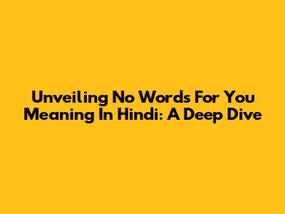 Unveiling 'No Words For You' Meaning In Hindi: A Deep Dive