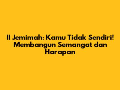 Semoga artikel ini memberikan inspirasi dan panduan yang bermanfaat bagi kalian semua. Ingatlah, II Jemimah Cita, Kamu Tak Sendiri! Teruslah berjuang, teruslah mencari dukungan, dan teruslah percaya pada diri sendiri. Kalian semua luar biasa dan mampu melewati apapun yang terjadi. Tetaplah semangat dan percayalah pada kekuatan yang ada dalam diri kalian.